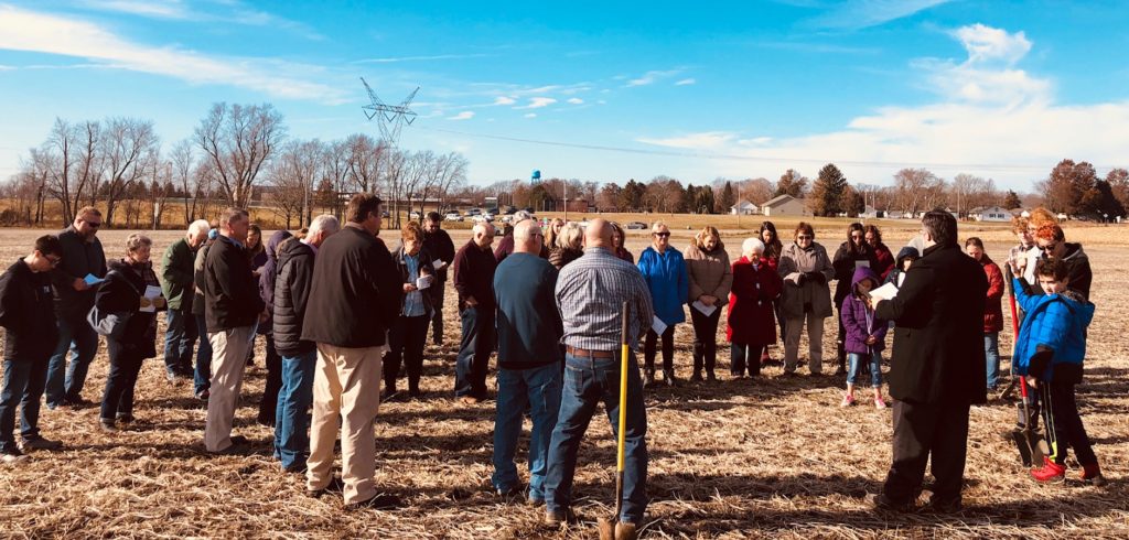This past Sunday (11/24/19) after the worship service, members of the church gathered at 11:00 to break ground on the new facility. We walked all the way into the field to the place where the front door of the new church would be (and we took a lot of the field with us on our boots when we left!).