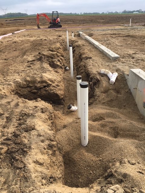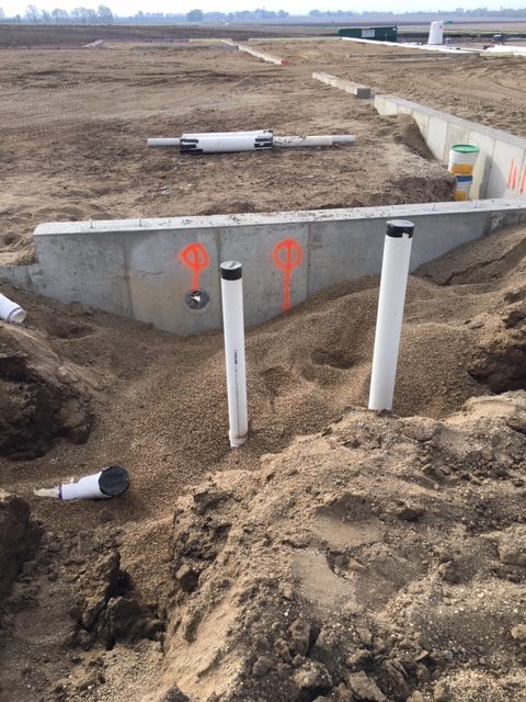 Water water everywhere! The rains may slow us down a bit, but it’s neat to see some of the draining and grading work on the sight doing what it’s supposed to do. Water has been a big theme for the week as the work has moved underground to get the plumbing into the building.