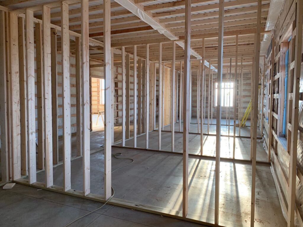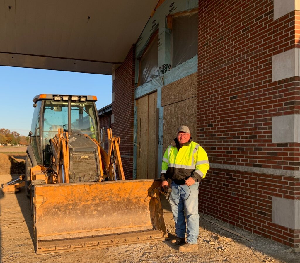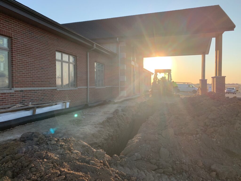 Yesterday our volunteer crew began to build the stage, began to dig the drainage tile, finished the office wing walls of the new church and began to chalk out our fantastic real-people-sized bathrooms! All three of them! Remember we have added a family restroom as well.