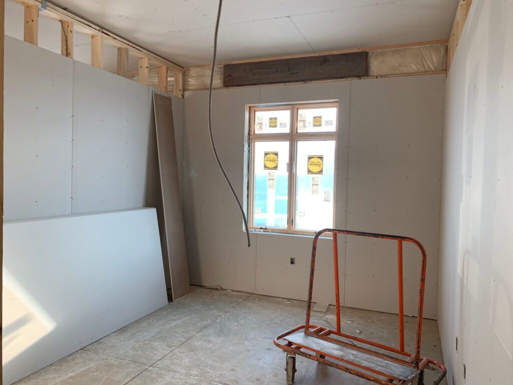 We are even just now beginning to see some of the drywall being installed. Here’s one of the office as the process is just beginning