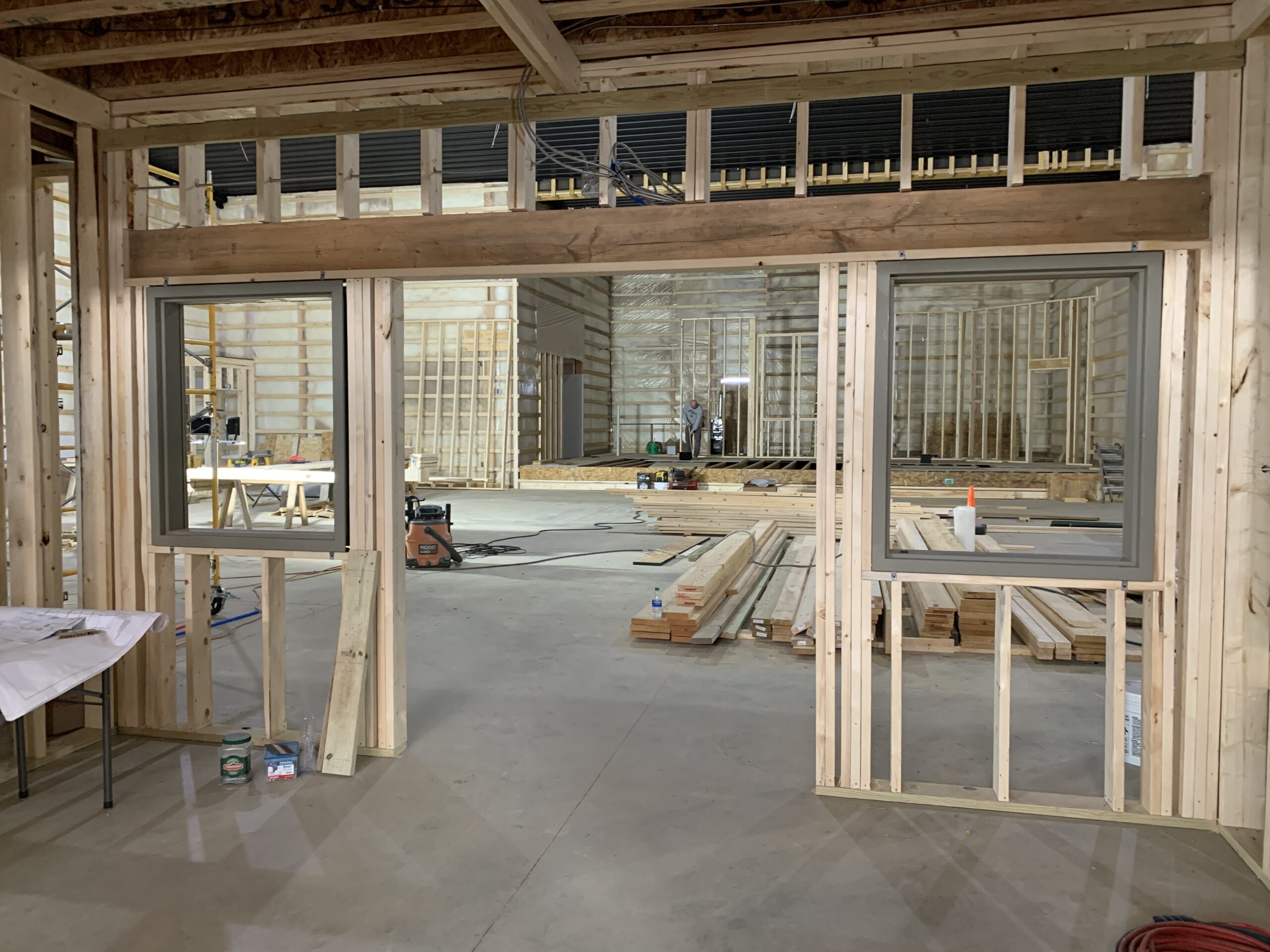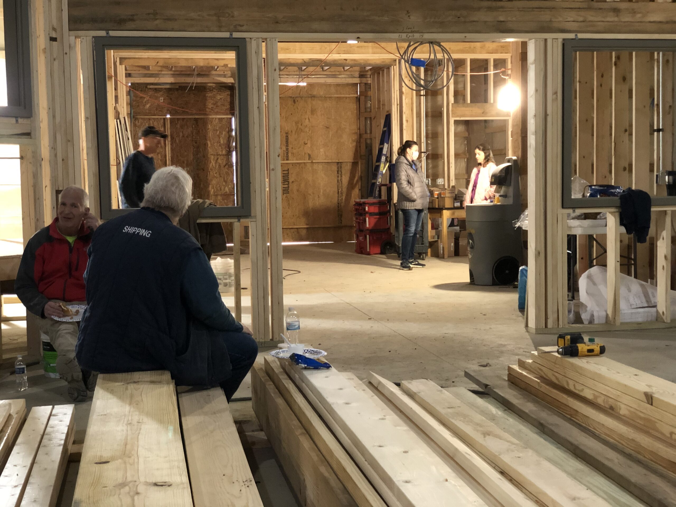 We continue to see a lot of traffic in and out of our new building! The Construction Team has been busy. Last Saturday they had a crew together working sun up to sun down on insulation and dry wall.