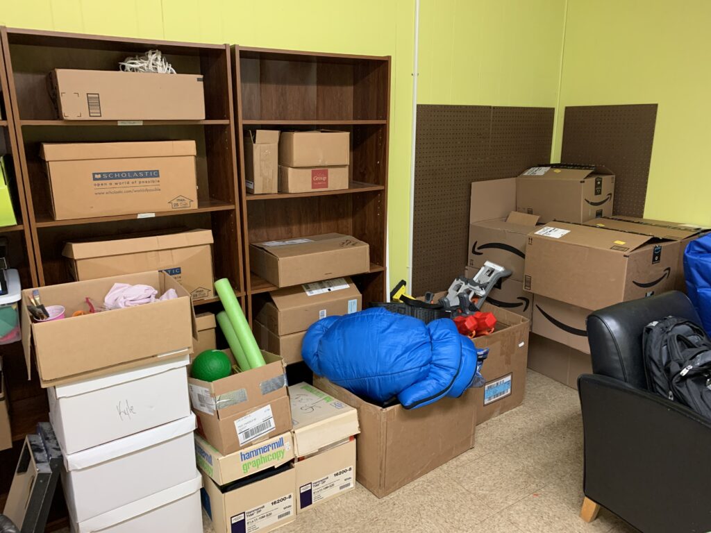 The Amazon packages contain the equipment we need for the new gymnasium space! These boxes have basketballs, volleyballs, soccer balls, footballs, dodgeballs, and other cool stuff for us to use!
