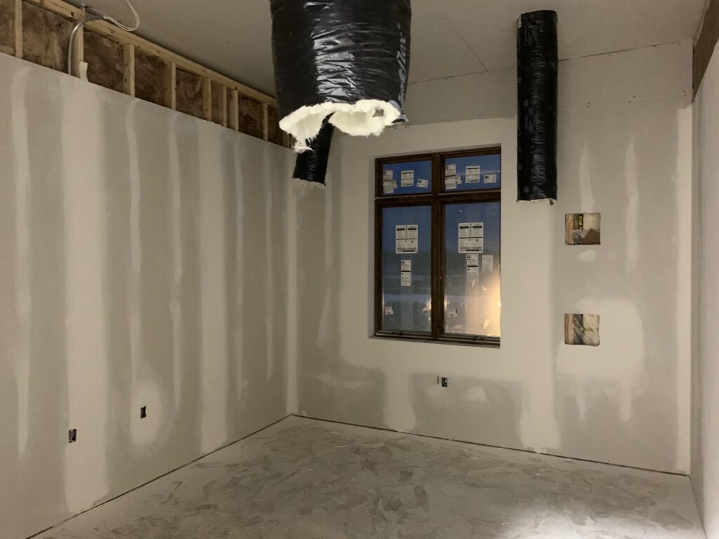 As you can see in the picture above, the drywall is up, and in many places it is ready for paint.