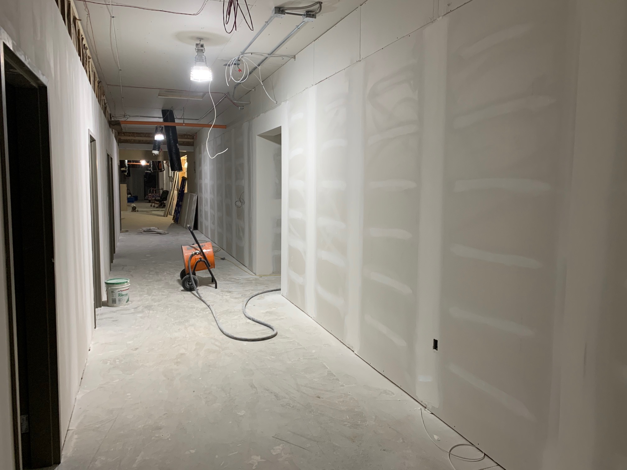 As you can see in the picture above, the drywall is up, and in many places it is ready for paint.